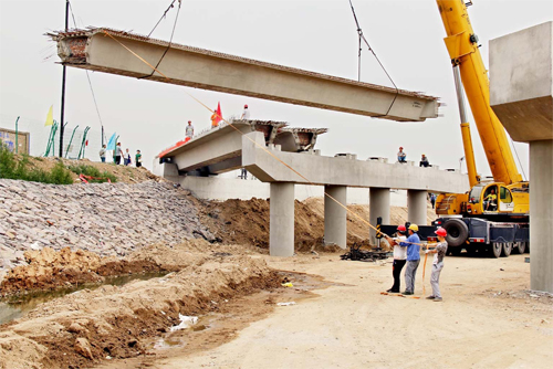 牧馬河橋施工現(xiàn)場。(智芝龍 趙曉煒 攝)