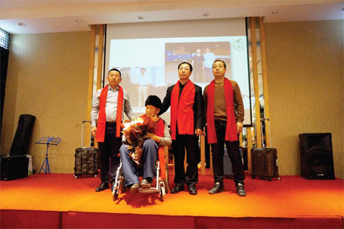 2017年公司年會(huì)上,趙吉財(cái)(坐輪椅者)接受公司股東、員工致敬。右二為趙新文。