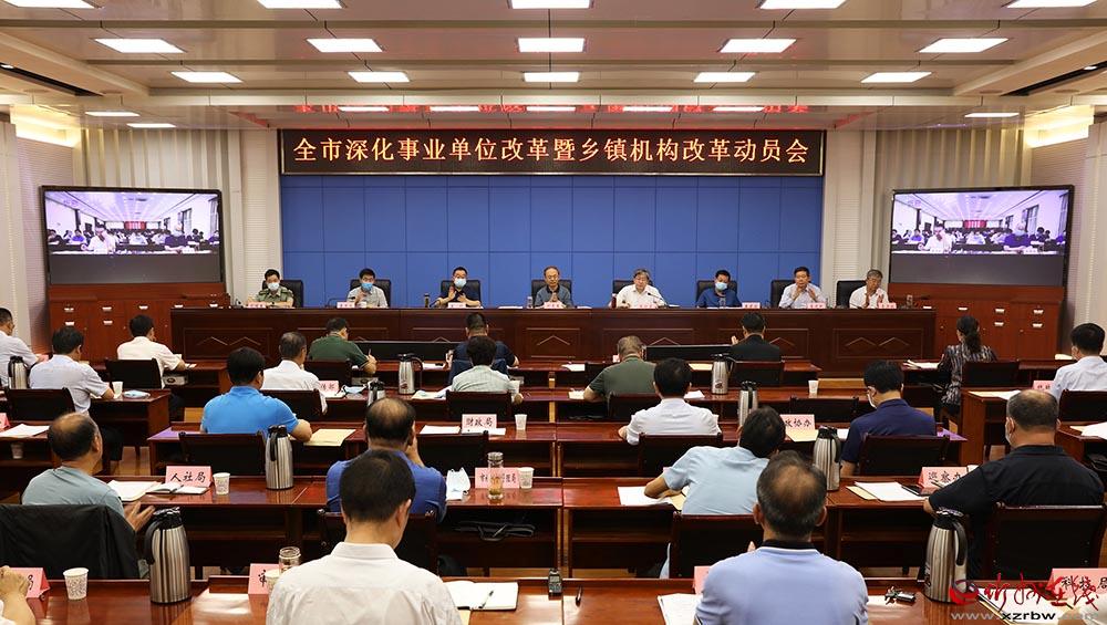 全市深化事業(yè)單位改革暨鄉(xiāng)鎮(zhèn)機構改革動員會會場。范濤 攝