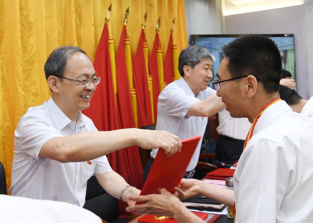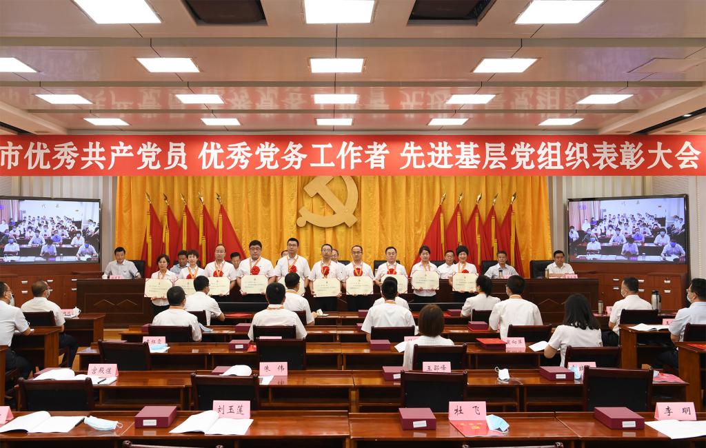 上午8時(shí)30分,大會(huì)正式開始,全體起立,奏唱國(guó)歌。來(lái)自全市各行各業(yè)、在工作中取得優(yōu)異成績(jī)的99名共產(chǎn)黨員、100名黨務(wù)工作者和100個(gè)基層黨組織,分別被授予“全市優(yōu)秀共產(chǎn)黨員”“全市優(yōu)秀黨務(wù)工作者”“全市先進(jìn)基層黨組織”榮譽(yù)稱號(hào)。受到表彰的優(yōu)秀個(gè)人和先進(jìn)集體代表先后上臺(tái)領(lǐng)獎(jiǎng),會(huì)場(chǎng)響起熱烈掌聲。