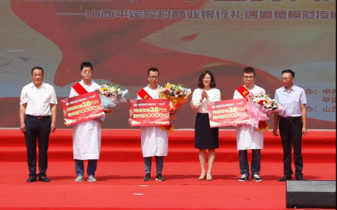 活動中,平定縣縣委常委、宣傳部長王玉卿啟動“山西平定農(nóng)村商業(yè)銀行禮遇道德模范授信儀式”。并與平定縣人大副主任劉順彬、政協(xié)副主席劉同禮共同為平定縣醫(yī)療集團援助武漢的三名醫(yī)療隊員當場授予30萬元特別授信以及10000元慰問金,以激發(fā)社會向上向善的強大精神力量。