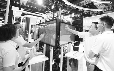 在WAIC 2024上,參觀者在某大模型演示屏前體驗(yàn)交流。新華社記者 方喆攝