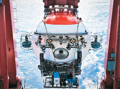 圖為9月11日,“蛟龍?zhí)枴陛d人潛水器在維嘉海山完成2024西太平洋國(guó)際航次科考最后一個(gè)潛次下潛作業(yè)。新華社記者 王聿昊攝