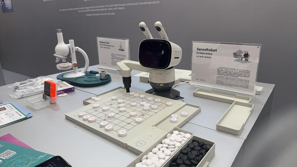 在2025全球開(kāi)發(fā)者先鋒大會(huì)“模速空間”專場(chǎng)上展示的AI下棋機(jī)器人。 新華社記者程思琪 攝