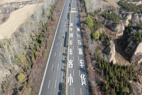 最右側(cè)車(chē)道為貨運(yùn)車(chē)輛專(zhuān)用車(chē)道(所有貨運(yùn)性質(zhì)車(chē)輛,包含藍(lán)牌貨車(chē)),限速值為80km/h,貨運(yùn)車(chē)輛只能通行最右側(cè)專(zhuān)用車(chē)道通行,其它類(lèi)型車(chē)輛不得占用;