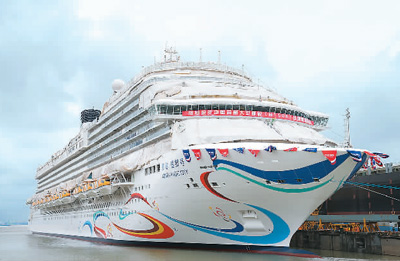 6月6日,由中國(guó)船舶外高橋造船有限公司建造的首艘國(guó)產(chǎn)大型郵輪“愛達(dá)·魔都號(hào)”在上海出塢。新華社記者 丁 汀攝