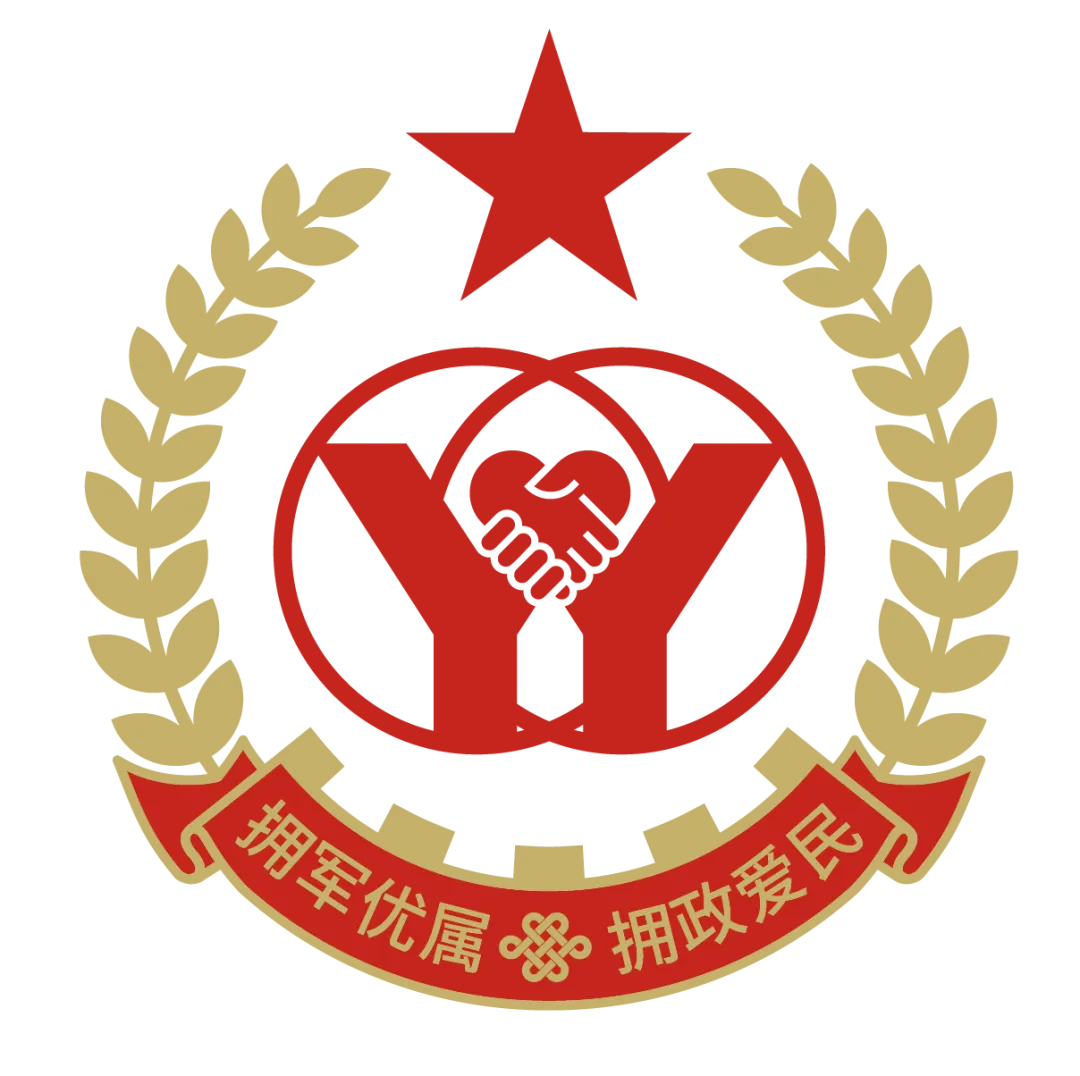 “Y”分別取自擁軍優(yōu)屬、擁政愛民第一個(gè)拼音字母,兩“Y”相交處以雙手相連共筑一顆心的造型為表現(xiàn),寓意軍政軍民凝心聚力、同心合力,展現(xiàn)同呼吸、共命運(yùn)、心連心的軍政軍民關(guān)系。