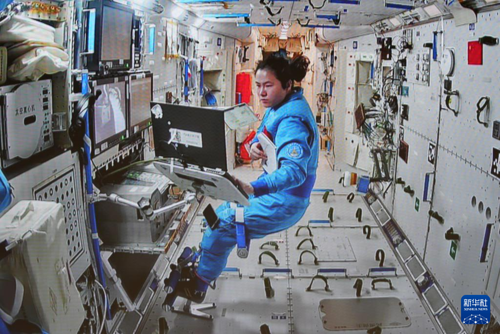 1月20日在北京航天飛行控制中心拍攝的神舟十九號(hào)航天員王浩澤在空間站組合體艙內(nèi)協(xié)同工作的畫面。新華社記者 劉芳 攝