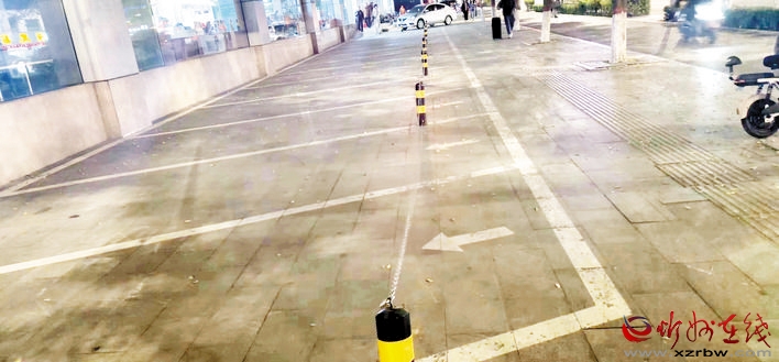 本報(bào)訊 近日,有市民向本報(bào)新聞熱線反映,在位于我市城區(qū)七一北路和團(tuán)結(jié)街交匯處的華美超市門前,一到晚上,門前停車位就被商家用鐵索串聯(lián)起來(lái),既影響通行,又存在安全隱患。
