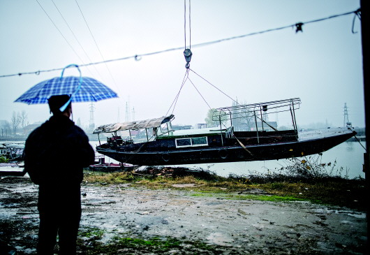 去年10月,他已把所有漁具,包括漁網(wǎng)、魚鉤、一艘6米長的手搖小船和10米長的柴油機船等交由政府銷毀,換取了16萬元補償款。根據(jù)一項全國性政策,嚴正華所在的長江沿岸地區(qū)將禁漁10年。