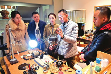 如今,夫妻二人擁有自己的工作室,各自收徒20余人。兩人的主攻方向是將“非遺”產(chǎn)品逐步融入文化創(chuàng)意產(chǎn)業(yè),真正讓傳統(tǒng)非遺“活”起來。