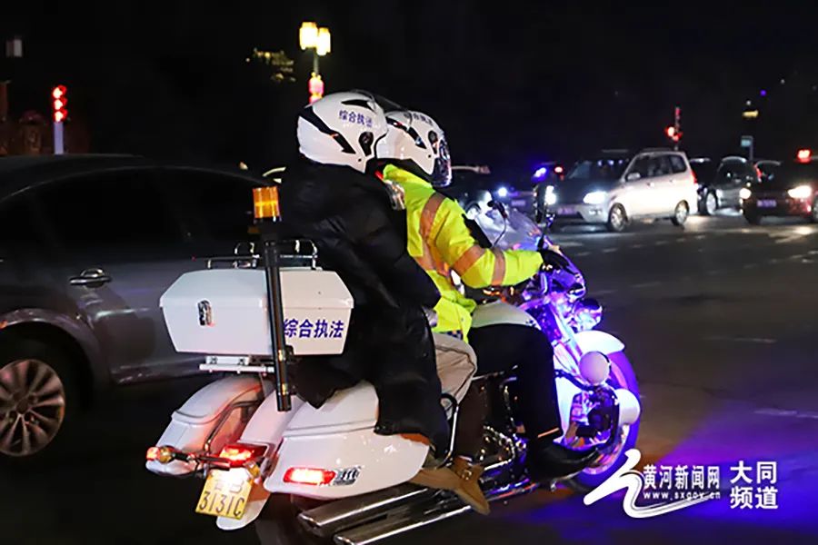 在人流如織的古城街頭,大同平城區(qū)鐵騎隊員們?nèi)找箞允兀珪r段管理,快速、便捷排查轄區(qū)內(nèi)各主次干道及重點區(qū)域的死角、盲區(qū),疏導(dǎo)攤點,規(guī)范非機動車停放,幫助前來求助的旅客與市民,做到了城市管理“不打烊”,“城管藍”春節(jié)不斷檔。