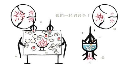 “《用甲骨文的方式打開春節(jié)》的靈感就來自于一位小學生粉絲的投稿。這位六年級小朋友經(jīng)常和我們互動,他畫的甲骨文小人包餃子的場景畫面感和趣味感兼具,‘人’‘鼎’‘皿’‘火’字都包含其中,給了我們很多啟發(fā)?!秉S麗潔說,“就在我們打算發(fā)布視頻的前一天,這位小粉絲給我們發(fā)來了他的手稿,我們都覺得眼前一亮,立馬將包餃子的畫面加入視頻當中?!?/p>