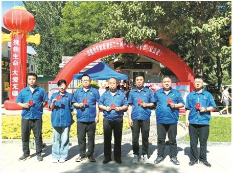 忻州市市政公司員工集體獻血后合影留念。 本報記者 張志遠攝