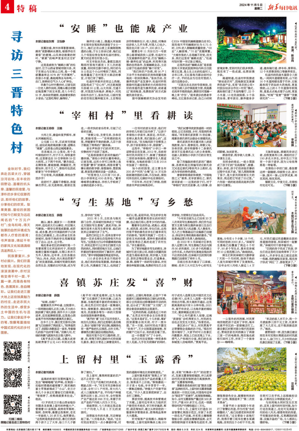 據(jù)中國睡眠研究協(xié)會發(fā)布的《2024中國居民睡眠健康白皮書》,居民每天平均睡眠時長為6.75小時,22%的人群睡眠質(zhì)量較差,“00后”入睡困難,“70后”夜醒頻繁。“大城市里的人總是睡不好覺,沒關(guān)系,我們這里有‘睡眠名醫(yī)’?!彼蓮R村駐村第一書記張?jiān)撇┱f。