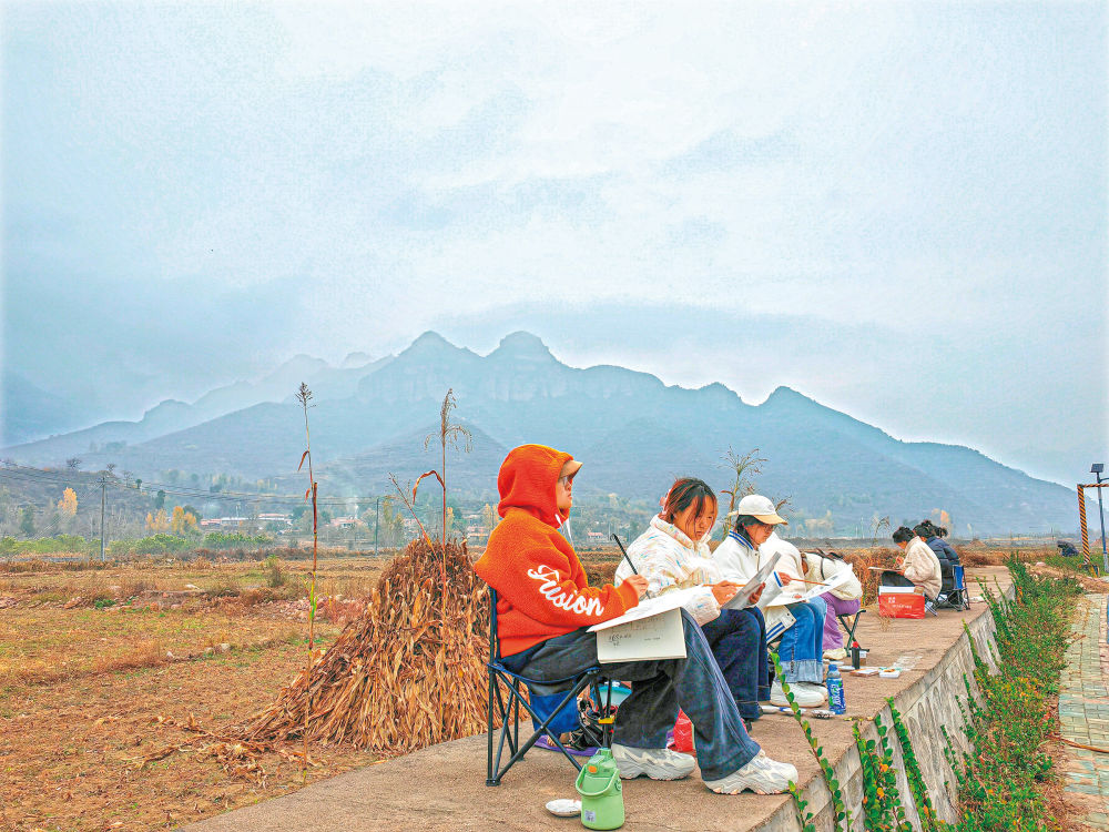 雖然已時近立冬,但來自晉中學(xué)院的一百多名師生仍堅(jiān)持每天外出寫生?!斑@里是太行山中段最雄美的地方,來到這里可以讓學(xué)生們接受大自然的洗禮,同時感受地方文化,讓他們積累創(chuàng)作素材的同時了解農(nóng)村、熱愛農(nóng)村?!睍x中學(xué)院國畫老師孟冠華說。