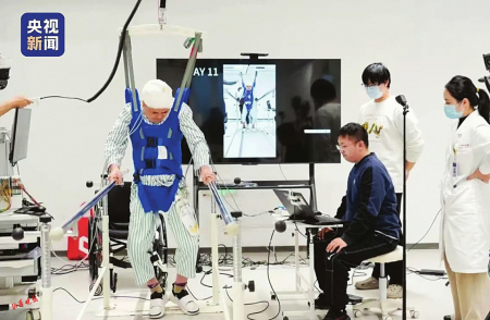 林先生已經(jīng)可以在懸吊下獨立使用助步器行走,他激動地說:“我終于再次體會到走路的感覺。”