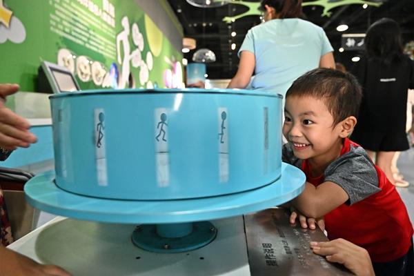 8月20日,山西省太原市,兒童在山西省科技館內(nèi)觀察視覺(jué)暫留現(xiàn)象。今年暑假期間,山西省科技館推出“科學(xué)嗨一夏”系列科普活動(dòng),旨在激發(fā)不同年齡段孩子們的好奇心和探索欲。視覺(jué)中國(guó)供圖