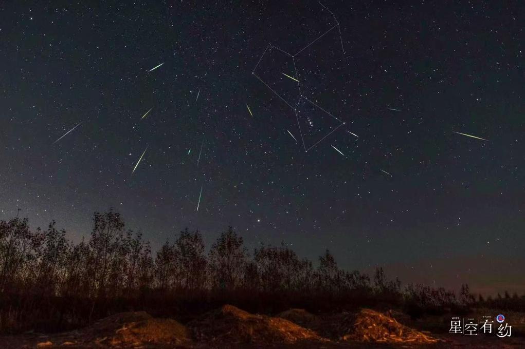 2020年10月21日,在黑龍江大慶拍攝的獵戶(hù)座流星雨(多張疊加)。(劉成山 攝)