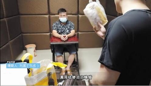 “耳結(jié)是平時(shí)收集的耳屎和蜂蠟混合做成的”劉某交代,平時(shí)會(huì)將免費(fèi)掏的耳屎收集起來(lái),在家做成“耳結(jié)”,在合適的時(shí)候把“耳結(jié)”放入客人耳中。耳朵有問(wèn)題的老人“求醫(yī)心切”更容易上鉤,價(jià)格會(huì)按老人的穿著打扮試探性說(shuō)一個(gè)相對(duì)高一點(diǎn)的,如果老人嫌貴就降價(jià),等老人同意了再“動(dòng)手”,這樣幾乎不會(huì)失手?!拔覕[攤掏耳結(jié)已經(jīng)兩年了,從來(lái)沒(méi)有人報(bào)警”被審訊時(shí),劉某仍然不相信自己因?yàn)檫@事進(jìn)派出所。