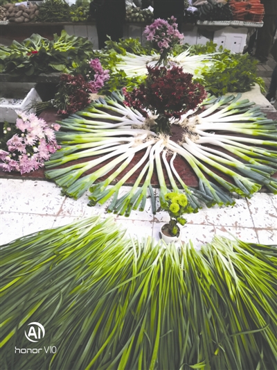 他用鮮花點(diǎn)綴菜攤