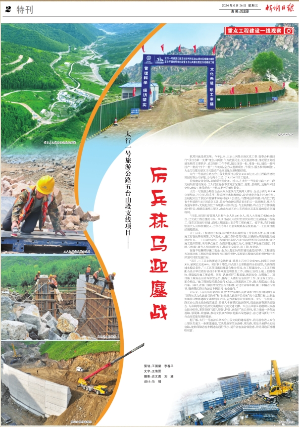 搶抓建設(shè)黃金期,刷新項(xiàng)目進(jìn)度條。近日,在太行一號(hào)旅游公路五臺(tái)山段支線項(xiàng)目建設(shè)現(xiàn)場(chǎng),工人們正有條不紊地加緊施工,挖機(jī)、裝載機(jī)、運(yùn)輸車(chē)來(lái)回穿梭,建設(shè)工地呈現(xiàn)出一片熱火朝天的繁忙景象。