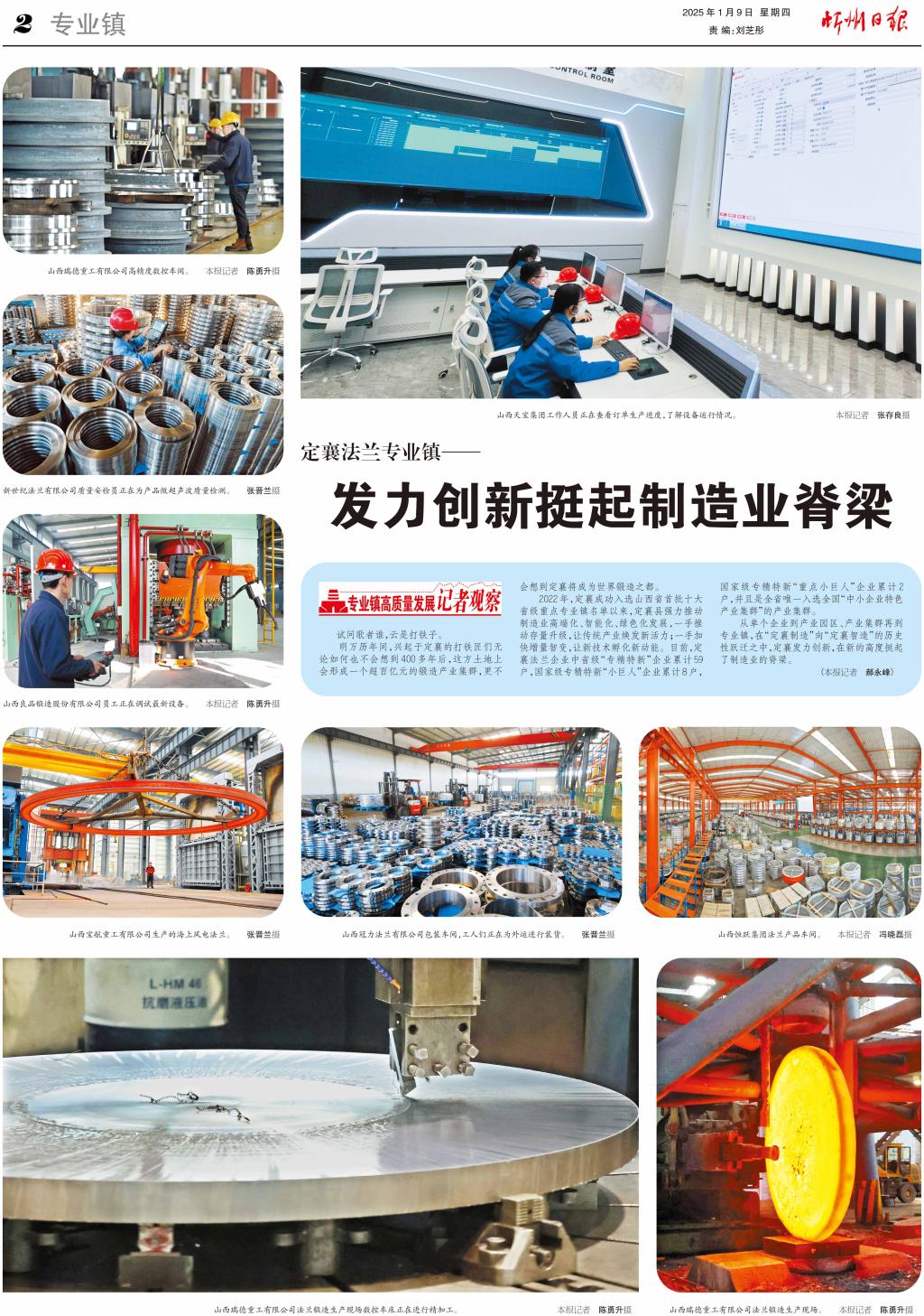 制造業(yè)是立國之本、興國之器、強國之基。定襄縣全面落實中央、省、市關于推動制造業(yè)高質量發(fā)展的要求,以法蘭專業(yè)鎮(zhèn)建設為牽引,主動融入科技強國、制造強國、質量強國等國家戰(zhàn)略,舉全縣之力、聚各方之智,帶動“定襄制造”這艘巨輪駛向更寬航道。