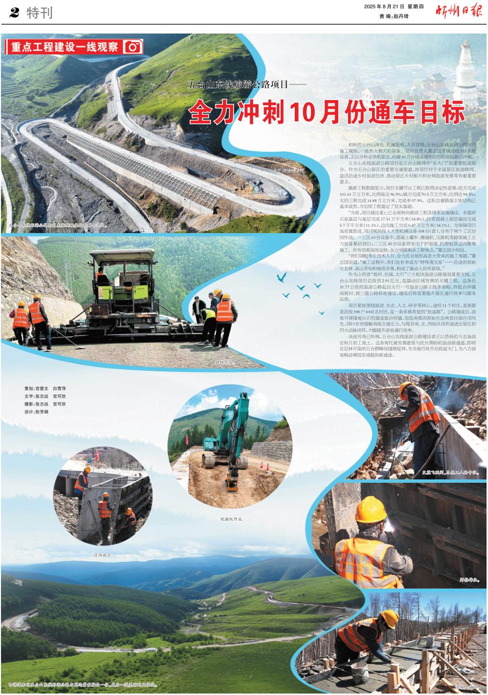 決戰(zhàn)號角已吹響,五臺山東線旅游公路建設(shè)者正以昂揚的斗志奮戰(zhàn)在秋日的工地上。這條寄托著發(fā)展愿景與民生期盼的旅游新通道,即將在層林盡染的五臺群峰間鋪展延伸,為當?shù)匕傩臻_啟致富大門,為八方游客暢游佛國圣境提供新通途。