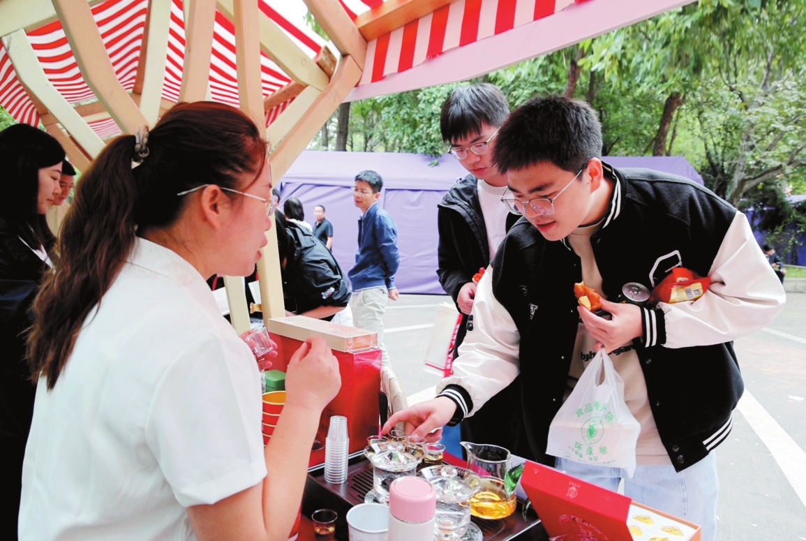 我市在清華大學(xué)國(guó)防教育林舉辦秋季學(xué)期學(xué)生地域文化節(jié)暨“人到山西好風(fēng)光”忻州專(zhuān)場(chǎng)活動(dòng)。圖為清華大學(xué)學(xué)生品嘗毛建茶。本報(bào)記者范琛攝
