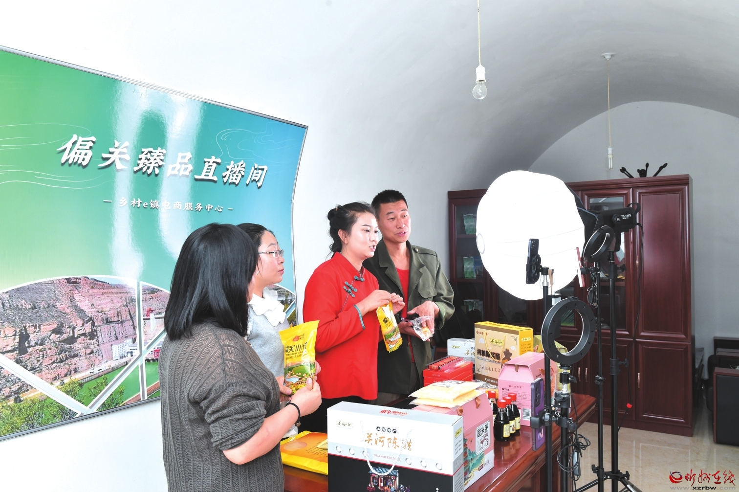 偏關(guān)鄉(xiāng)村e(cuò)鎮(zhèn)公共服務(wù)中心直播帶貨現(xiàn)場。本報(bào)記者 馮曉磊 攝
