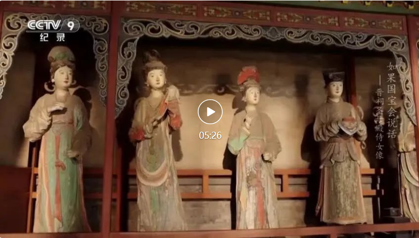 “一千年前,她搬進(jìn)了一座大殿,進(jìn)深六間,面闊七間,是她不曾想象的奢華,還有望到脖子酸的牌匾,懸甕山麓,晉水發(fā)源,是祭祀西周晉國第一任諸侯姬虞的祠堂——晉祠。”在《如果國寶會說話》第四季第13集中,全景呈現(xiàn)了晉祠圣母殿侍女像的文物故事。