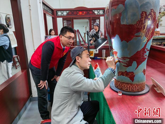 藝人正在繪制圖案。鞏劭杰 攝