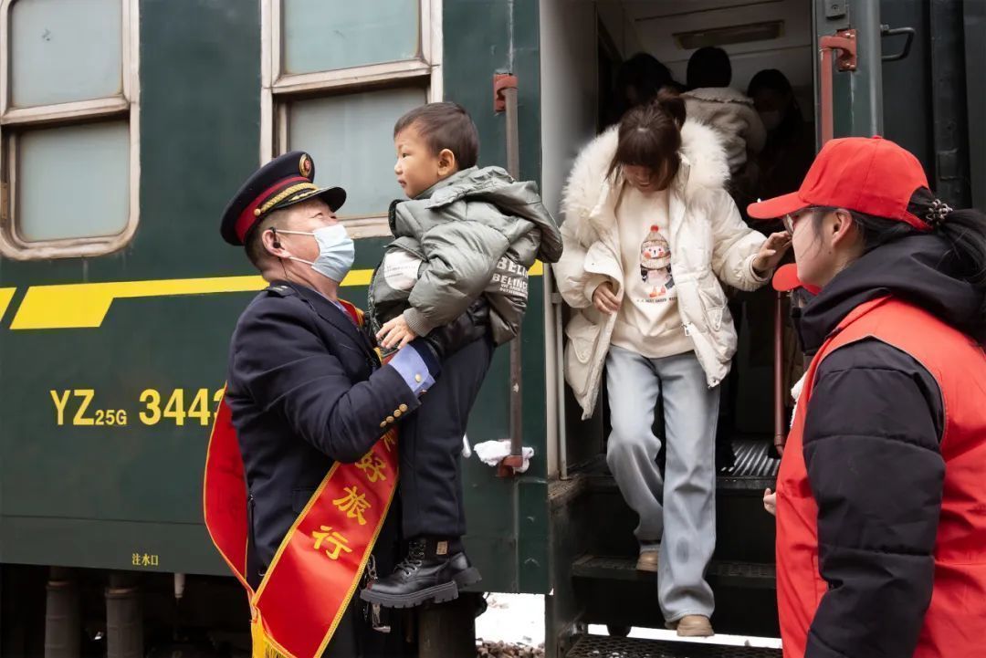 正值寒假,帶著孩子前來打卡的寶爸寶媽不在少數(shù),列車工作人員會(huì)暖心地向他們介紹一些乘車的安全常識(shí)。