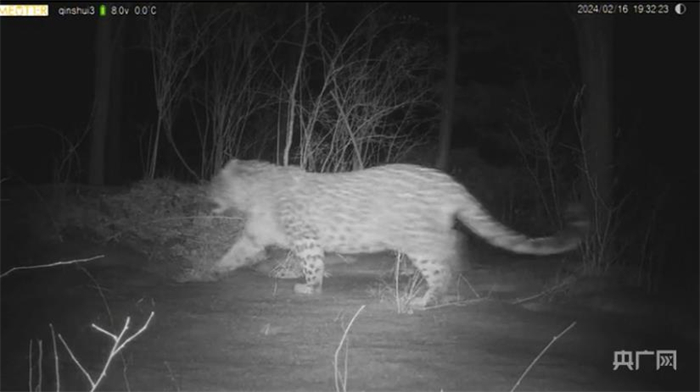 歷山省級地質(zhì)公園內(nèi),紅外相機拍攝到的華北豹畫面(央廣網(wǎng)發(fā) 山西省生態(tài)環(huán)境廳供圖)