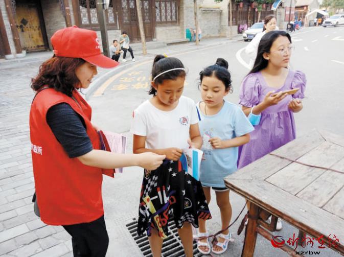 聚是一團(tuán)火,散是滿天星。一個(gè)微笑、一份禮讓、一只援手,都是志愿服務(wù)精神的繽紛綻放。也許,一個(gè)人的力量是有限的,但榜樣帶給市民的正能量是無(wú)窮的。古城游客紛紛表示,作為忻州人,在創(chuàng)建文明城市過(guò)程中,要當(dāng)好文明古城的傳播者,主動(dòng)傳遞文明新風(fēng),用自身的行動(dòng)帶動(dòng)更多的朋友們參與到文明創(chuàng)建中。從我做起,從小事做起,讓志愿服務(wù)在忻州古城久行成風(fēng)、眾行成氣,匯聚文明向上的力量,為文明城市創(chuàng)建精彩代言。圖為秀容辦志愿者服務(wù)隊(duì)在忻州古城泰山廟廣場(chǎng)。 (本報(bào)記者 王國(guó)梁)