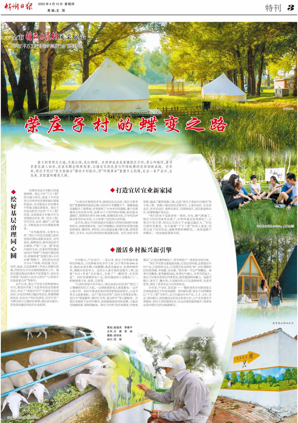 鄉(xiāng)村美、產(chǎn)業(yè)旺、農(nóng)民富……一幅和美的鄉(xiāng)村新畫卷正在神池縣榮莊子村徐徐鋪展。面向新征程,榮莊子村將繼續(xù)以“千萬工程”為牽引,全方位推動(dòng)鄉(xiāng)村產(chǎn)業(yè)、人才、文化、生態(tài)、組織振興,加快建設(shè)宜居宜業(yè)和美鄉(xiāng)村,讓產(chǎn)業(yè)發(fā)展水平再提高、農(nóng)村人居環(huán)境再優(yōu)化、社會(huì)治理效能再提升,探索農(nóng)業(yè)農(nóng)村現(xiàn)代化的實(shí)踐新路徑。