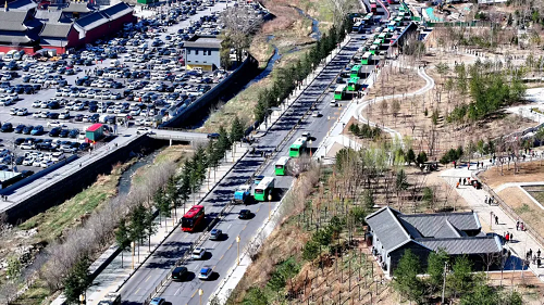 春日的五臺(tái)山繁花點(diǎn)點(diǎn)、楊柳吐翠,群山環(huán)抱的自然風(fēng)光與井然有序的旅游環(huán)境交相輝映,呈現(xiàn)出一幅人與自然和諧共生的美麗畫(huà)卷。寺廟內(nèi)外、步道兩旁,到處奇松、怪石、山花相映成趣,游客們紛紛駐足,欣賞這絕美畫(huà)卷。