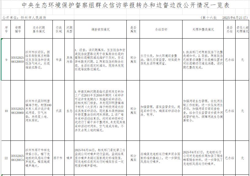 中央生態(tài)環(huán)境保護(hù)督察組群眾信訪舉報(bào)轉(zhuǎn)辦和邊督邊改公開(kāi)情況一覽表(第十六批)