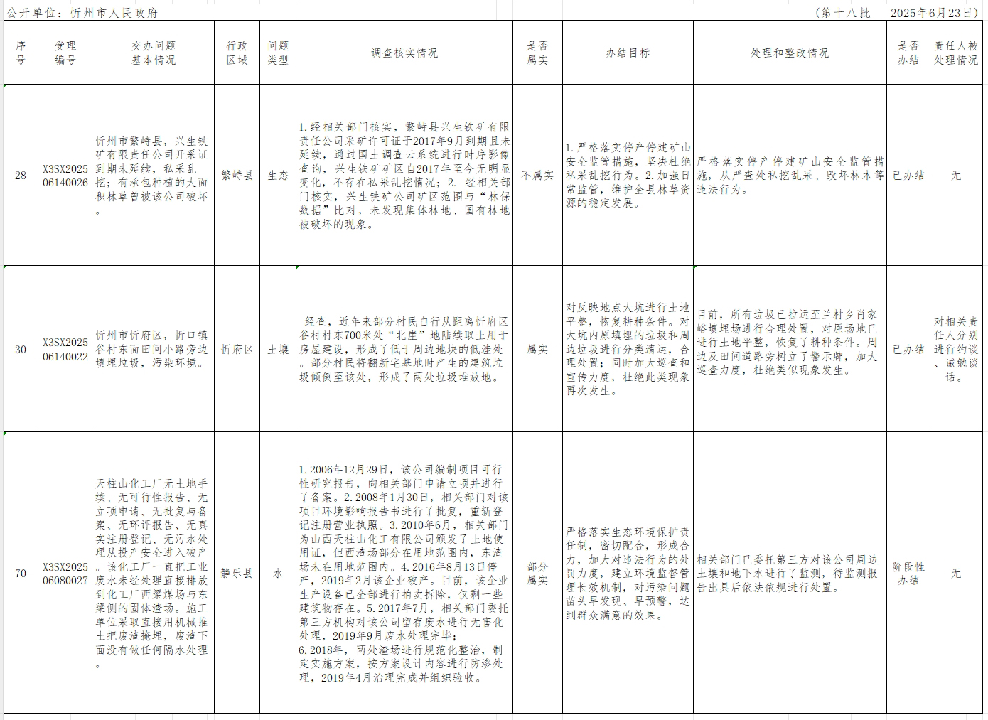 中央生態(tài)環(huán)境保護(hù)督察組群眾信訪舉報(bào)轉(zhuǎn)辦和邊督邊改公開(kāi)情況一覽表(第十八批)