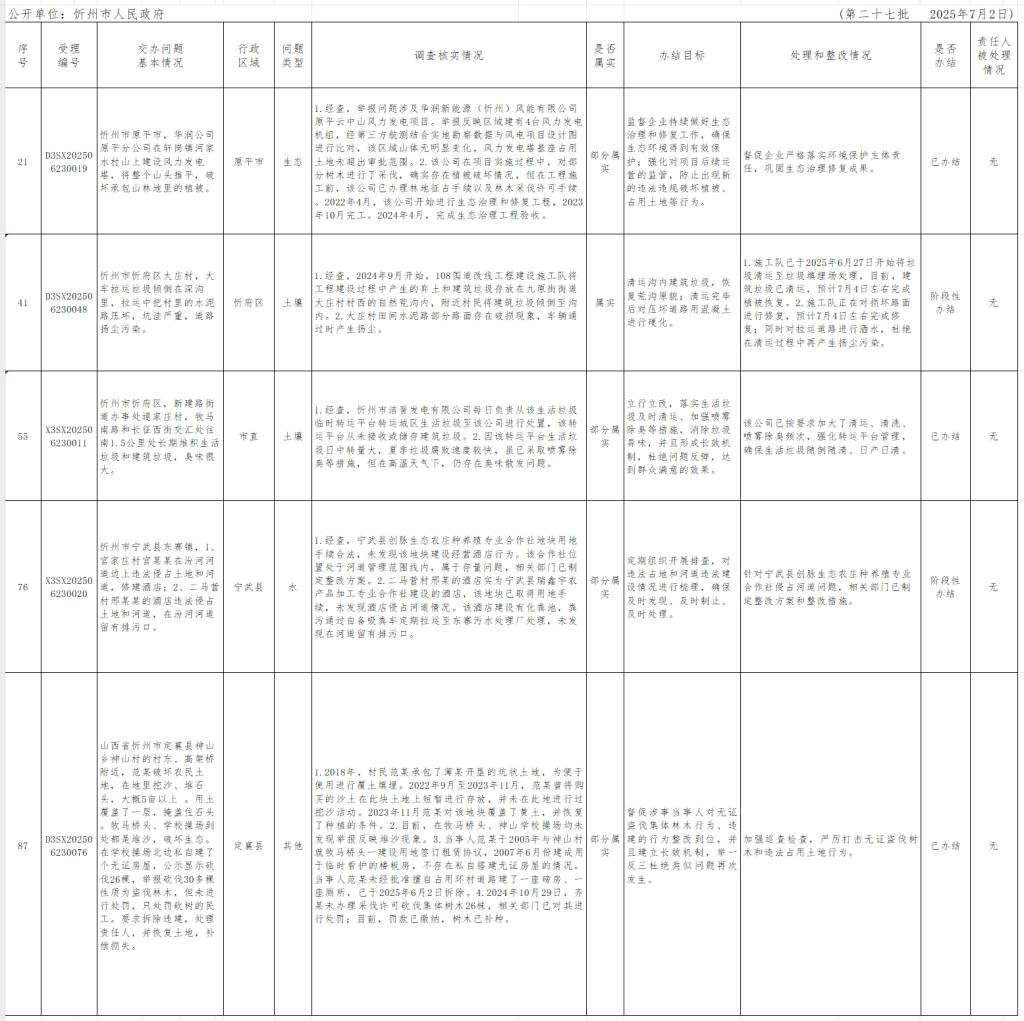 中央生態(tài)環(huán)境保護督察組群眾信訪舉報轉辦和邊督邊改公開情況一覽表(第二十七批)