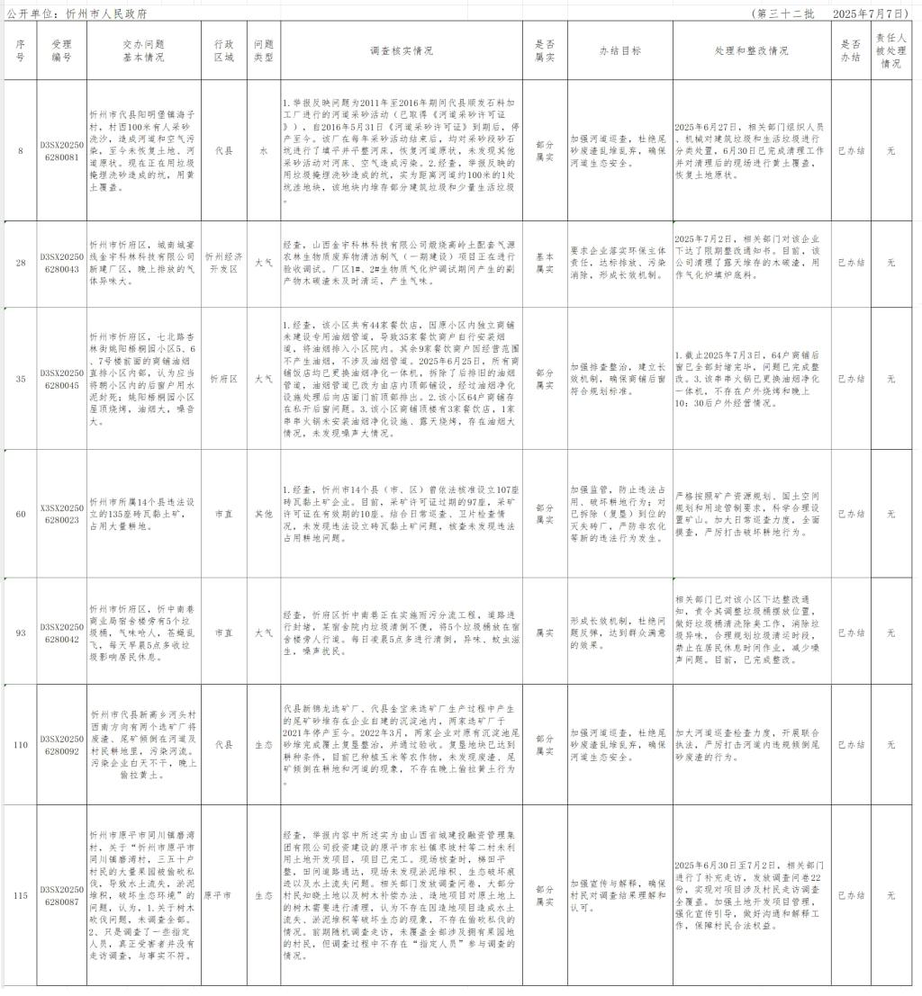 中央生態(tài)環(huán)境保護(hù)督察組群眾信訪舉報(bào)轉(zhuǎn)辦和邊督邊改公開情況一覽表(第三十二批)