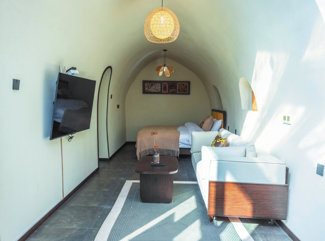 設(shè)計(jì)獨(dú)特的三層小院子,是游客喝茶、露營、抄經(jīng)、健身的好去處。民宿于2024年2月9日(大年三十)試營業(yè),共有22間不同主題的客房,節(jié)假日期間每天客滿,平時(shí)的入住率在80%以上,深受游客歡迎。(劉耀 宮可欣)