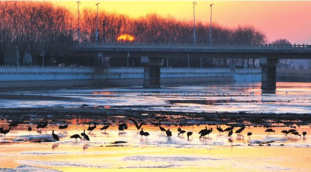 作為國(guó)家4A級(jí)旅游景區(qū),滹源景區(qū)依托滹沱河生態(tài)資源而建,220萬(wàn)平方米的區(qū)域內(nèi),“一帶二廊三區(qū)串珠狀”的分布格局,將濕地、河島、蘆葦蕩等多樣生態(tài)景觀有機(jī)串聯(lián)。全長(zhǎng)80公里的滹沱河穿境而過(guò),橡膠壩蓄水形成的連片淺灘水質(zhì)澄澈,魚蝦、水生昆蟲等生物資源豐沛,完美契合了黑鸛淺水區(qū)覓食、喜靜避擾的生活習(xí)性,為它們提供了理想的棲息環(huán)境。