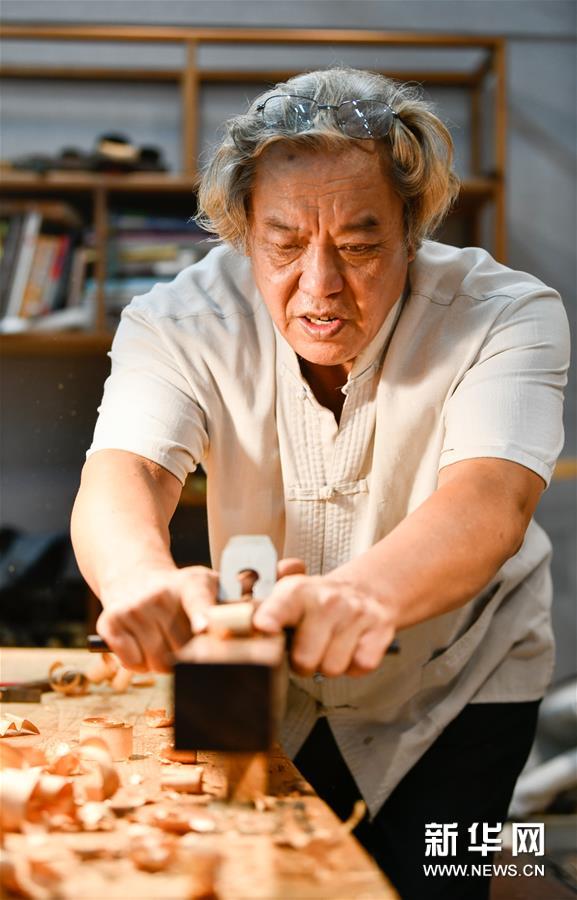 8月25日,在天津職業(yè)大學辛全生大師木藝工作室,辛全生在用刨刀刮料。今年62歲的辛全生是天津市南開區(qū)傳統(tǒng)木工榫卯技藝的非遺代表性項目傳承人。2019年9月,天津職業(yè)大學為發(fā)展并傳承木工技藝,邀請辛全生作為老師給學生們授課,負責教授學生們榫卯結(jié)構(gòu)知識和木藝家具制作等實用技巧,并于2019年底在校內(nèi)建立辛全生大師木藝工作室。 辛全生出生于匠人家庭,他聽從父親的建議從16歲開始學習木工。40余年的木工生涯,辛全生經(jīng)歷過木工行業(yè)曾經(jīng)的紅火和后來的逐漸衰落,也曾在最艱難的時候做過別的營生。但無論如何,辛全生始終忘不了自己的木工身份?!袄献孀诹粝聛淼臇|西不能丟了,要傳承下去,否則將來的后代誰都不知道木工榫卯技術(shù)的存在了?!毙寥f。 近年來,有近百名不同職業(yè)、不同年齡的人慕名前來拜辛全生為師,學習傳統(tǒng)木工榫卯技藝。辛全生說,我會讓徒弟們學好木工榫卯技藝,讓中國的傳統(tǒng)手藝發(fā)揚光大。新華社發(fā)(孫凡越 攝)
