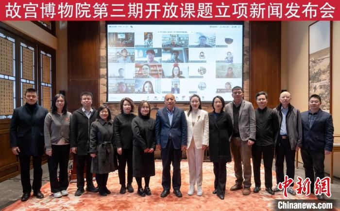 故宮博物院第三期開放課題立項新聞發(fā)布會現(xiàn)場嘉賓合影。 故宮博物院供圖