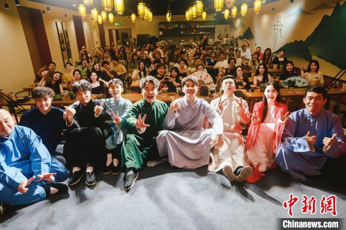 “之前只在線上聽過傳統(tǒng)相聲,來了才知道相聲還能這么玩,我錄制了視頻發(fā)在朋友圈,好幾個朋友都說要來打卡?!薄癦世代”張倩是這家相聲館的“老粉”,每周從不缺席?!拔疫€‘安利’給了丈夫和孩子,我們經(jīng)常一家三口來聽相聲,孩子現(xiàn)在都能說兩句貫口了。”張倩說。