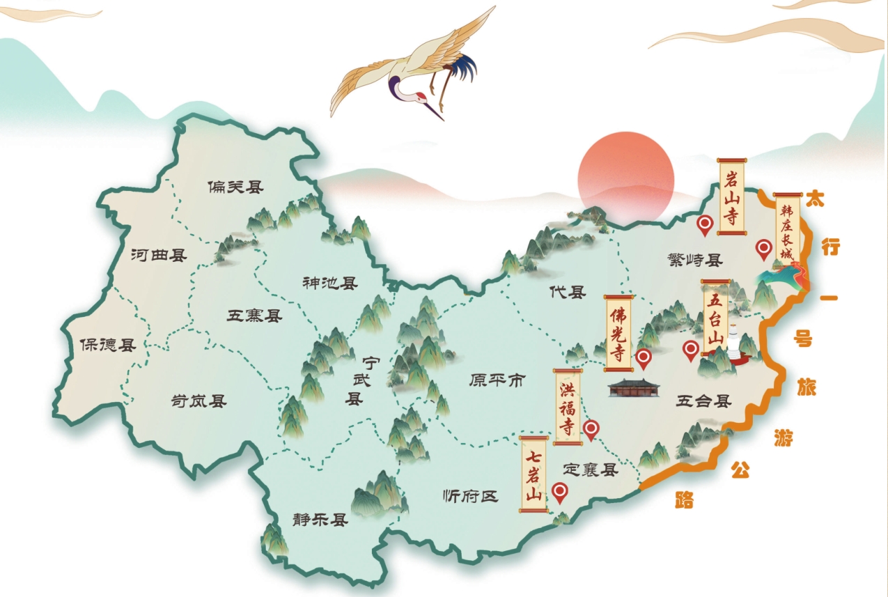 古有“馬蹄又上太行山”,立馬太行、雄視千里;今有駕車行駛于太行一號(hào)旅游公路,體味最美自駕精品路線。在太行一號(hào)旅游公路忻州段沿線,最著名的景點(diǎn)就是五臺(tái)山了。如果正是春天,五臺(tái)山上的樹木開始發(fā)芽,綠意朦朧;山腳下的桃花、杏花含苞待放,嬌艷動(dòng)人;山間的小溪潺潺流淌,清澈見底。游客沿著山路攀登,不僅可以鍛煉身體,還能欣賞到沿途的美景。到達(dá)山頂,俯瞰景區(qū),山間風(fēng)光盡收眼底,古寺的紅墻碧瓦與爛漫野花相互交融,隨手一拍都是大片。