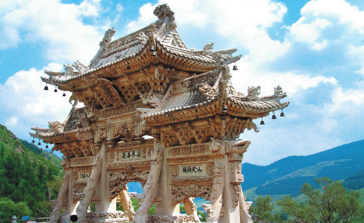 在五臺山眾多的石雕藝術中,最為杰出的是龍泉寺的漢白玉牌樓。它雖然雕造時間較晚,但工藝之精、構造之妙,是繼圓明園之后,我國近代中式園林雕建中獨樹一幟的杰作。