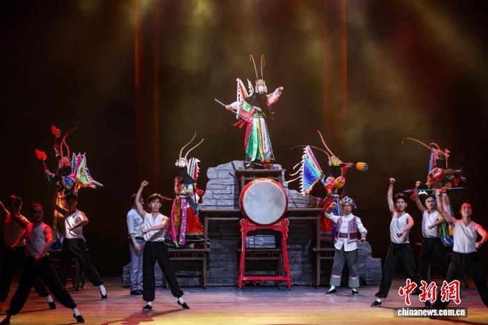 由貴州省民族歌舞團(tuán)演出的民族歌舞劇《山河同心》作為開(kāi)幕式劇目首演。劇目以第一批國(guó)家級(jí)非物質(zhì)文化遺產(chǎn)名錄項(xiàng)目“安順地戲”為重要情感紐帶和文化符號(hào),共分為《上梁》《拜月》《敬茶》《出征》四場(chǎng)。