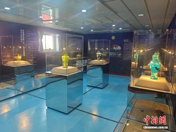 中國(海南)南海博物館館長辛禮學介紹,改造后的海上流動博物館核心展區(qū)推出了“深藍寶藏——南海西北陸坡一二號沉船考古成果特展”主題展覽,借助沉浸式場景還原、多媒體數(shù)字技術(shù)和精美復仿制文物,展現(xiàn)南海西北陸坡沉船遺址的地理位置、深海環(huán)境與考古成果。
